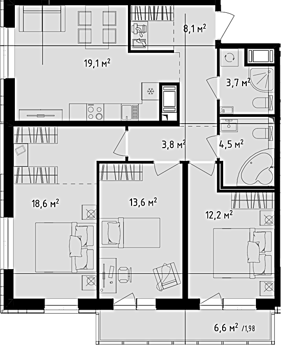 Красносельский р-н сдача 1 квартал 2027 1, 2, 3 комнаты от 29.42 до 81.46 м2 от 8,1 до 22,5 млн. руб