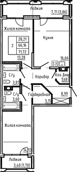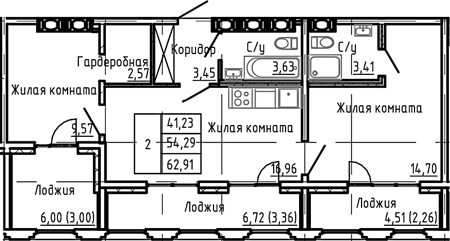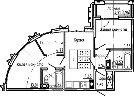 Приморский р-н Сдан 2, 3, 4 комнаты от 59.62 до 107.13 м2 от 17,4 до 32,2 млн. руб