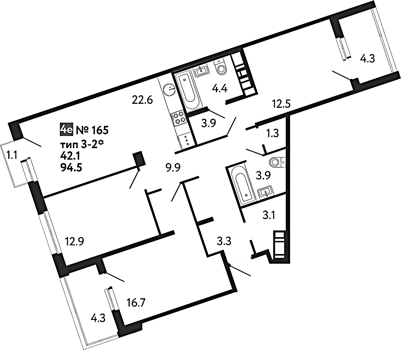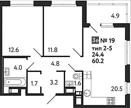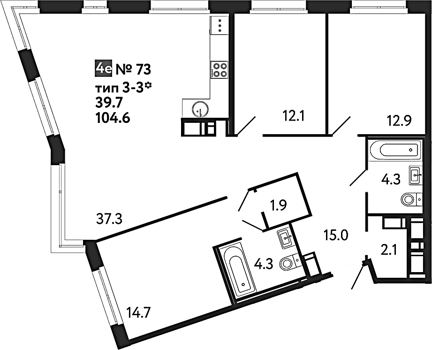 Приморский р-н сдача 2 квартал 2027 1, 2, 3, 4 комнаты от 39.51 до 90.18 м2 от 9,6 до 20,5 млн. руб