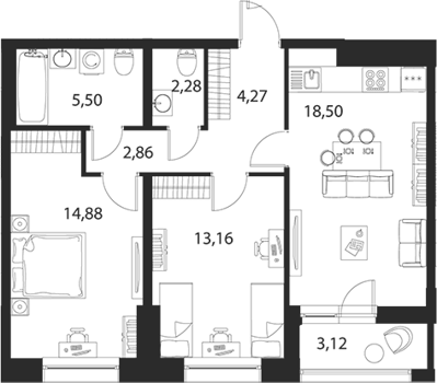 Красносельский р-н сдача 1 квартал 2027 1, 2, 3 комнаты от 29.42 до 81.46 м2 от 8,1 до 22,5 млн. руб