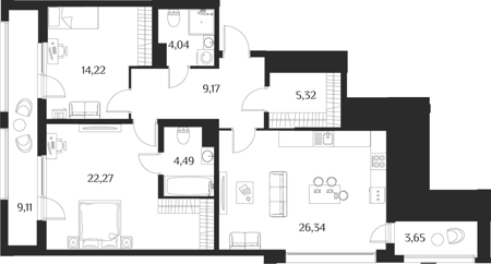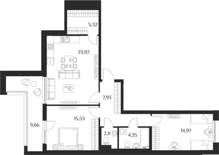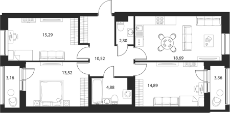 Невский р-н сдача 3 квартал 2027 1, 2, 3, 4 комнаты от 35.55 до 104.6 м2 от 14,5 до 37,8 млн. руб
