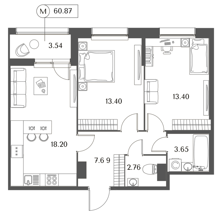 Приморский р-н сдача 2 квартал 2025 1, 3, 2, 4 комнаты от 40 до 96.2 м2 от 9,5 до 26,4 млн. руб
