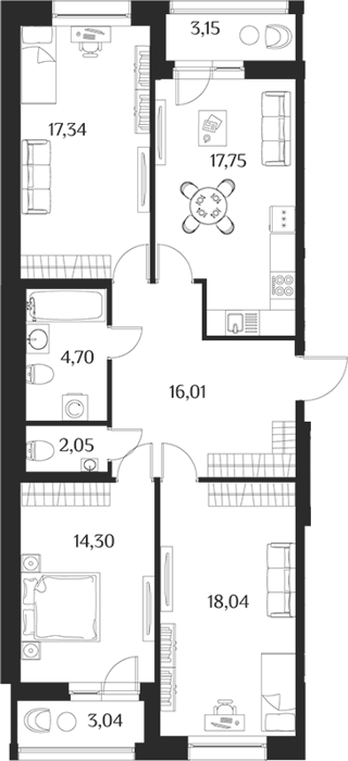 Московский р-н Старт продаж март 2025 1, 2, 3 комнаты от 33.23 до 88.57 м2 от 11,3 до 33,8 млн. руб