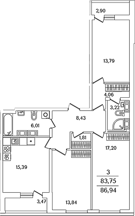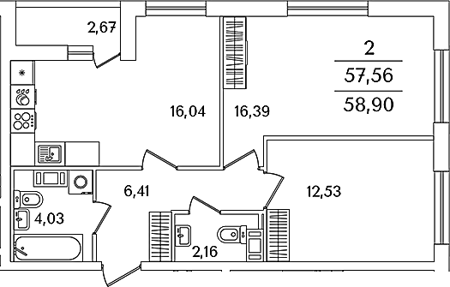 Приморский р-н сдача 2 квартал 2027 1, 2, 3, 4 комнаты от 39.51 до 90.18 м2 от 9,6 до 20,5 млн. руб