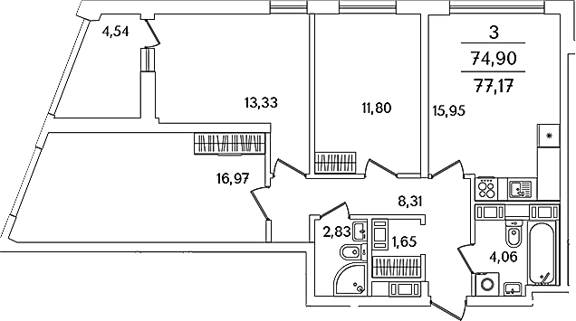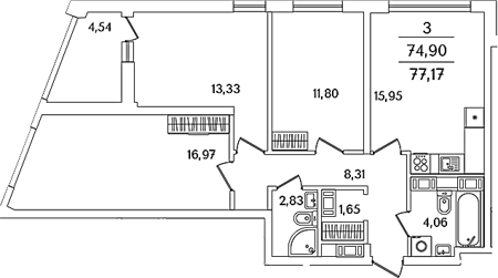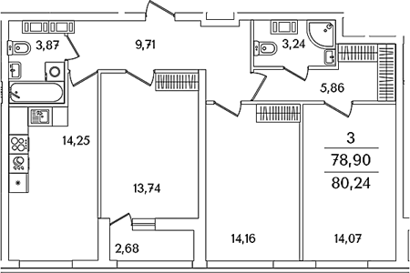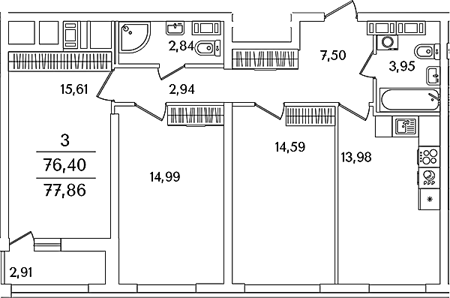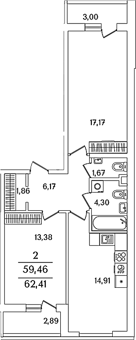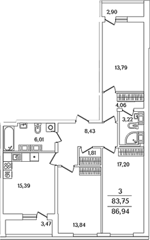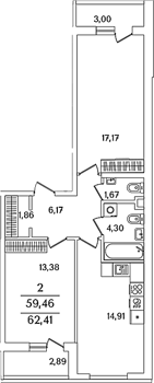 Приморский р-н Сдан 2, 3, 4 комнаты от 59.62 до 107.13 м2 от 17,4 до 32,2 млн. руб