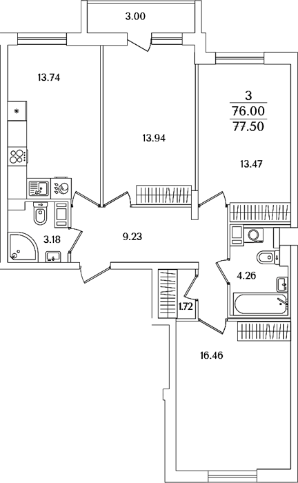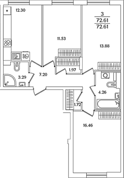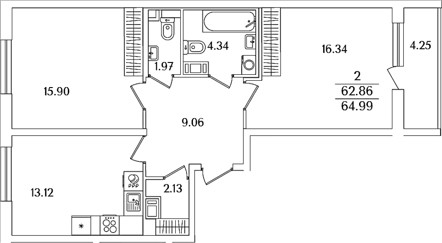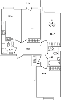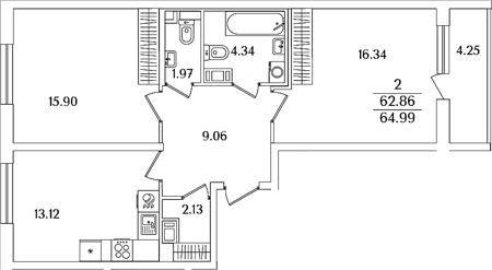 Приморский р-н Сдан 2, 3, 4 комнаты от 59.62 до 107.13 м2 от 17,4 до 32,2 млн. руб