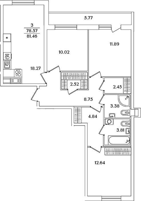 Приморский р-н сдача 2 квартал 2027 1, 2, 3, 4 комнаты от 39.51 до 90.18 м2 от 9,6 до 20,5 млн. руб