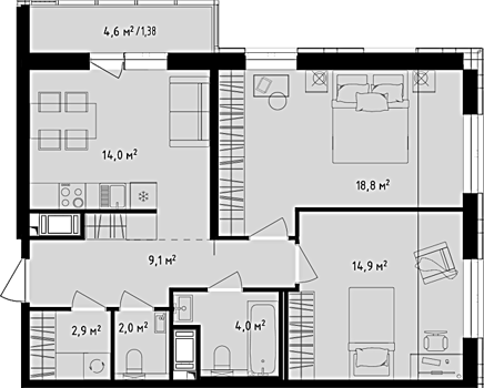 Красносельский р-н сдача 1 квартал 2027 1, 2, 3 комнаты от 29.42 до 81.46 м2 от 8,1 до 22,5 млн. руб