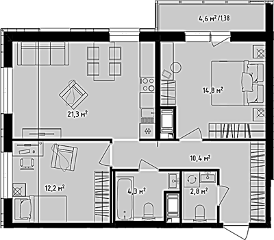 Приморский р-н сдача 2 квартал 2025 1, 3, 2, 4 комнаты от 40 до 96.2 м2 от 9,5 до 26,4 млн. руб
