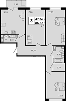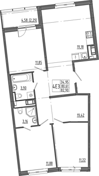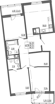Приморский р-н Сдан 2, 3, 4 комнаты от 59.62 до 107.13 м2 от 17,4 до 32,2 млн. руб